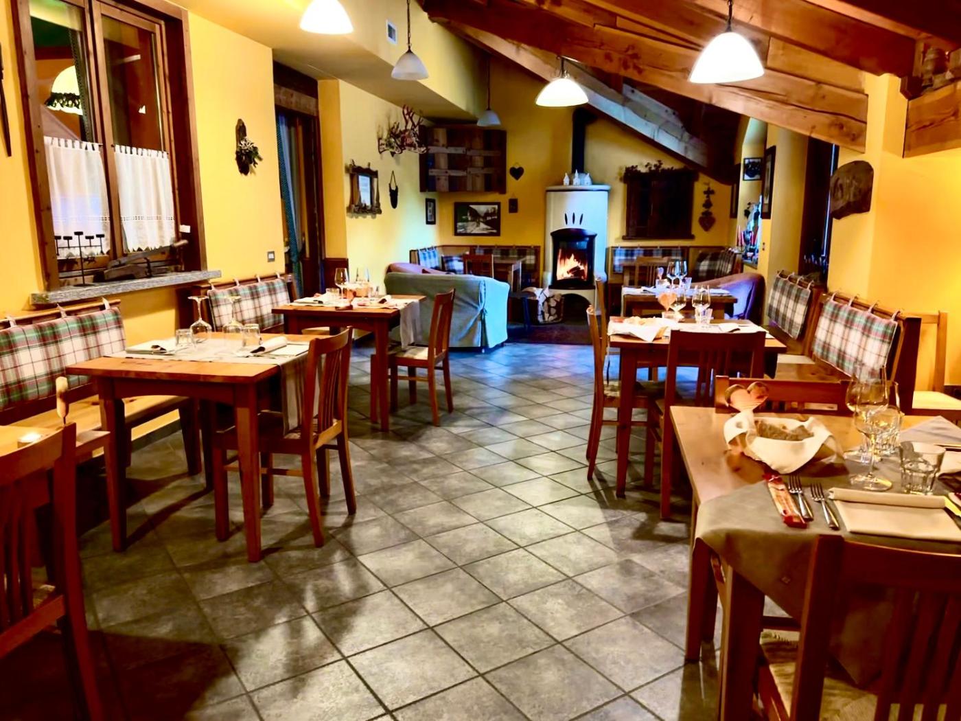 Il ristorante del Le Lievre serve una ricca colazione a buffet. Il ristorante serve piatti tipici valdostani, serviti in costume locale.